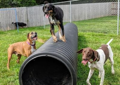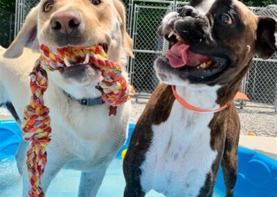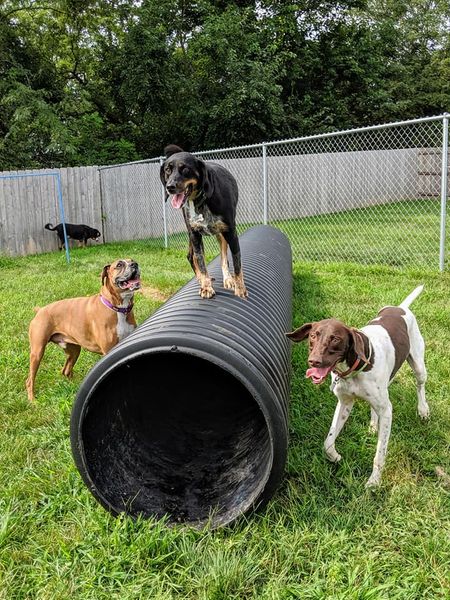At daycare our canines can play with the tether tug dog toy!